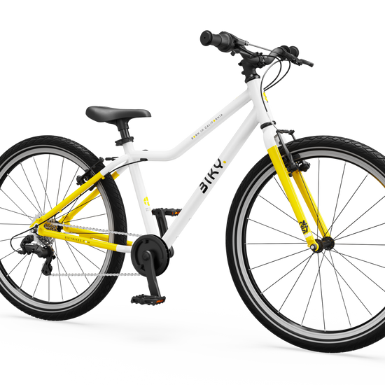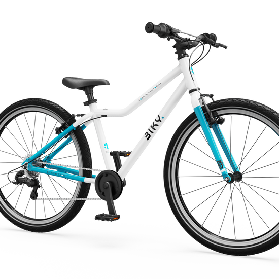 The Biky Air 24S7 is designed for older and more experienced children, providing a smooth transition to more challenging terrain, hills, and longer adventures — now with 7-speed gearing.